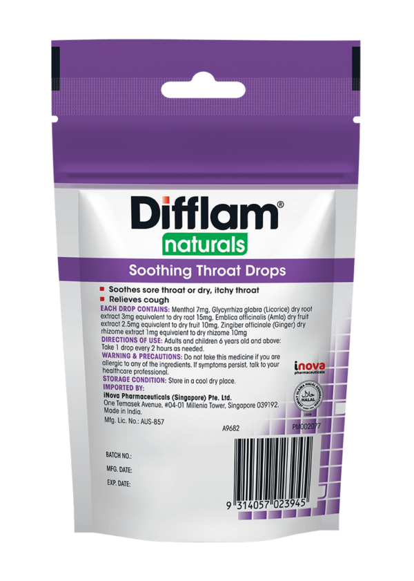Soothes sore throat. Relieves cough. Crafted with a blend of trusted natural ingredients. Contains Indian gooseberry (Alma), licorice, and ginger, which have anti-inflammatory and soothing properties, with menthol for a refreshing, cooling relief.